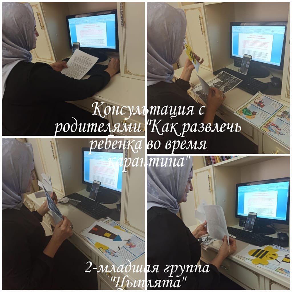 Воспитатель 2-ой младшей группы Хаджимурадова Раиса провела консультацию с родителями «Как развлечь ребенка во время карантина»