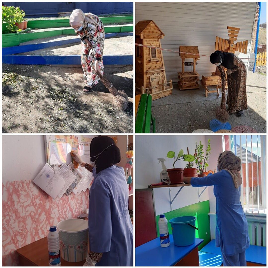 Сотрудники МБДОУ Детский сад «Иман» ст. Горячеисточненская провели субботник с применением дезинфицурующих средств