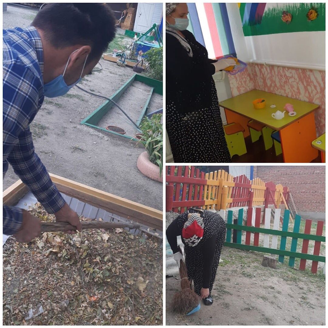 Сотрудники МБДОУ Детский сад «Иман» ст. Горячеисточненская провели субботник с применением дезинфицурующих средств