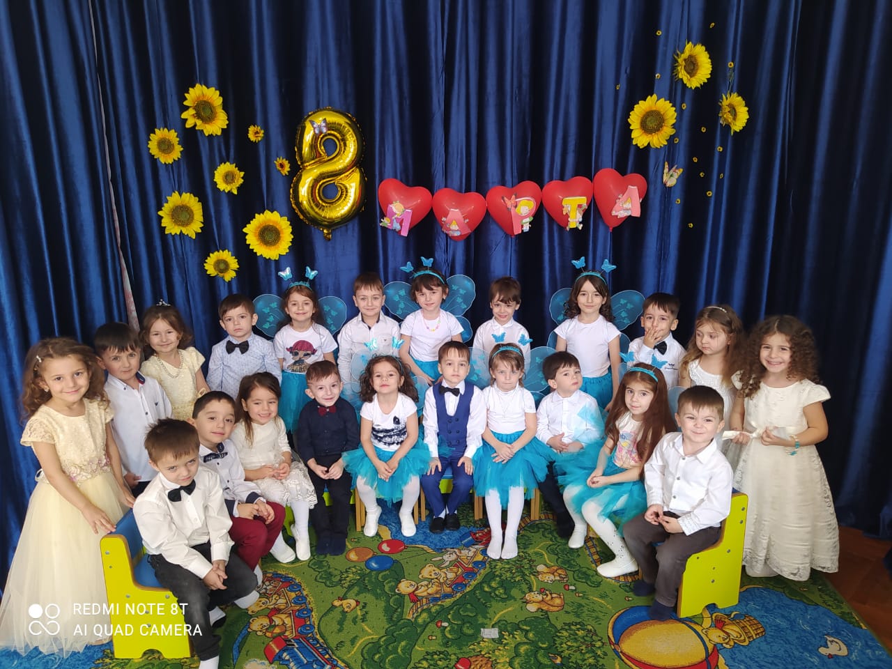 мы привыкли к нему как к доброму и веселому празднику. Мы любим его за приятные хлопоты, за улыбки наших мам, а значит всех женщин .Зал был красочно оформлен.