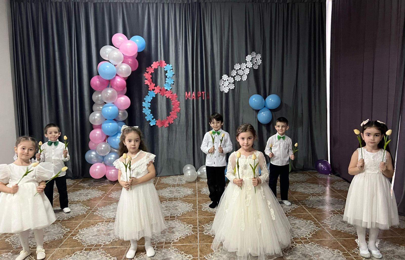 В нашем детском саду прошел утренник посвященные женскому дню. 8 марта – день торжественный, мы привыкли к нему как к доброму и веселому празднику. Мы любим его за приятные хлопоты, за улыбки наших мам, а значит всех женщин . Зал был красочно оформлен. Воспитанники готовились, к утренникам репетировали танцы, песни, сценки. Наш утренник прошел в торжественной, радостной атмосфере.